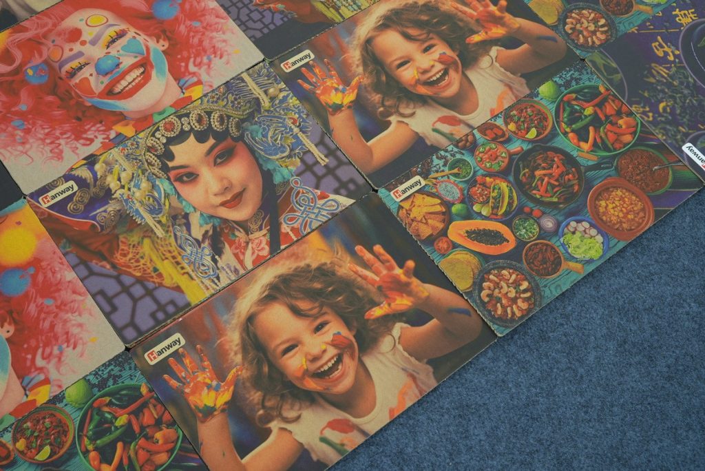 - Diseños complejos sin límites sobre cartón Kraft marrón y blanco (No estucado)