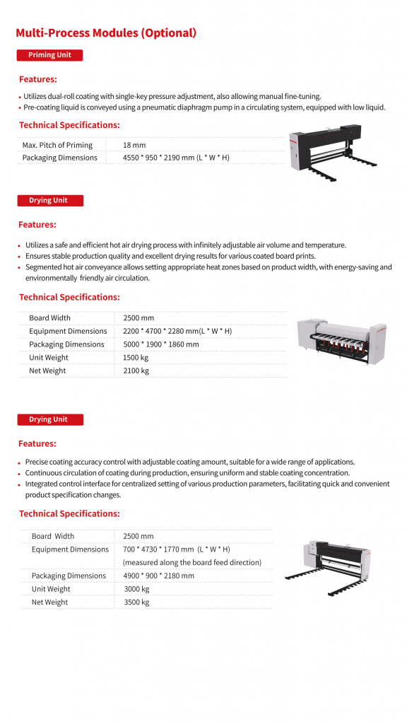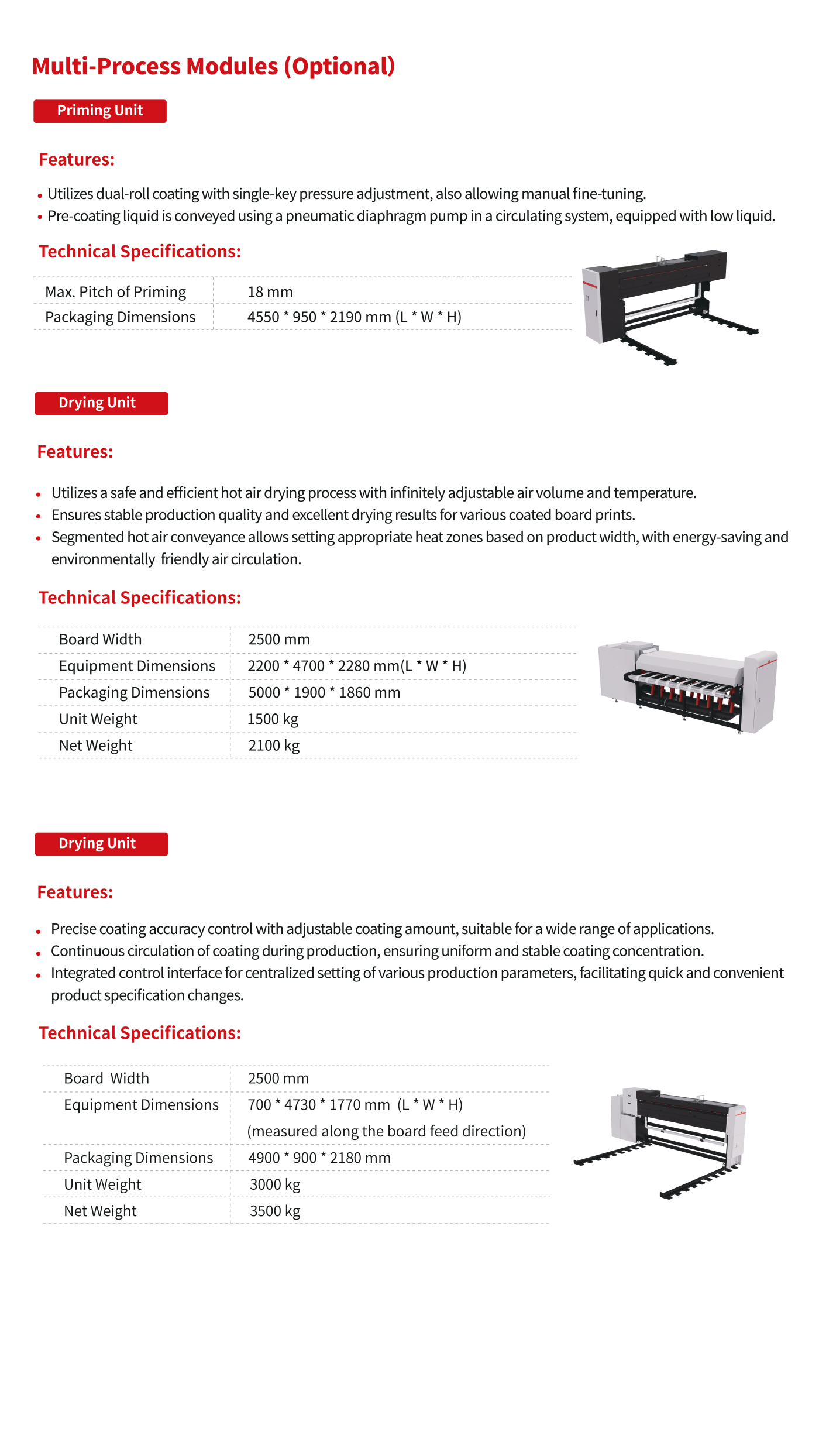 Soporta módulos como unidad de pretratamiento, unidad de secado, unidad de barnizado.